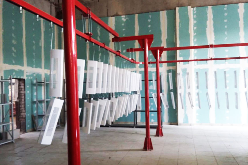 Основная задача конвейерной линии – окраска деталей промышленной мебели, электрических котлов и нескольких видов теплотехники. Эта работа не требует большого цветового разнообразия, но её объём очень велик, а детали часто бывают массивными.
