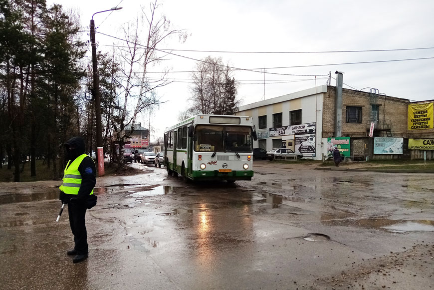В любую погоду – в дождь и слякоть – они отвечают за безопасность, порядок передвижения и остановки транспорта около завода.