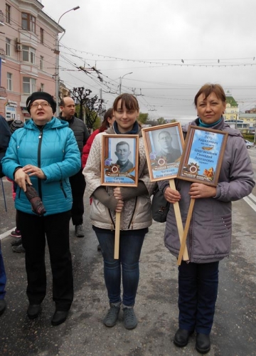 - В этом году акция «Бессмертный полк» в Рязани собрала рекордные сорок тысяч человек. Мы с семьей, мамой и младшей сестрой, слегка припозднились и прибыли примерно за сорок минут до начала шествия. Первое что я увидела – огромную людскую реку, текущую от остановки к месту сбора участников. Многие шли с фотографиями предков-ветеранов, но хватало и просто зрителей, в какой-то момент мне показалось, что зрителей будет больше чем участников.