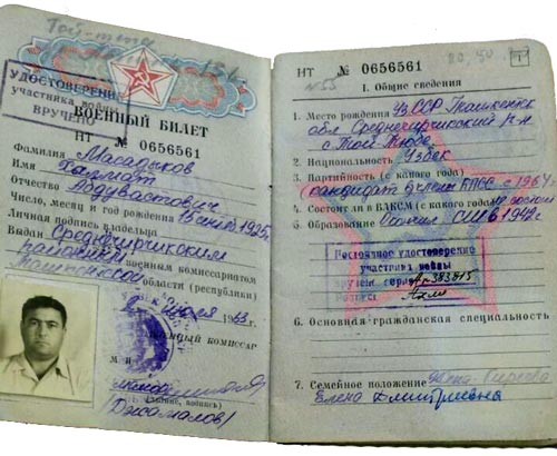 Военный билет Халмата Абдуваитовича Масадыкова