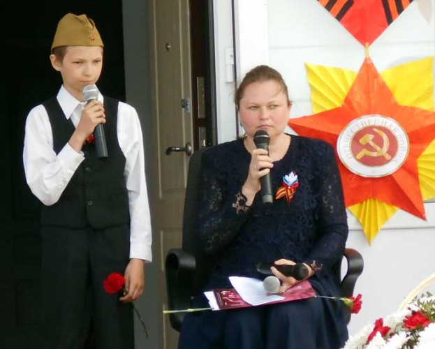 Песню «Бессмертный полк» исполнили Наталья Хохрякова и её сын Михаил. В руках мальчика был портрет его прабабушки Марии Степановны Субботиной – участницы войны. Пока звучала песня, зрители встали. Каждый держал таблички с портретами своих близких и родных.