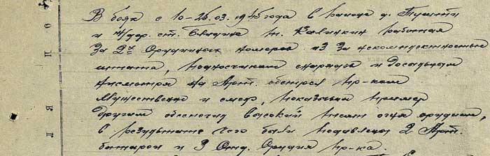 С 1 августа 1941 года по 9 мая 1945-го прадед участвовал в боевых действиях на Западном, Северо-Западном, 2-м Прибалтийском и Ленинградском фронтах.