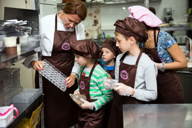 Мы регулярно проводим и открытые мастер-классы для всех желающих – учим делать шоколадки взрослых и детей.