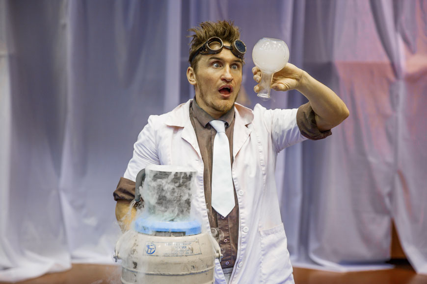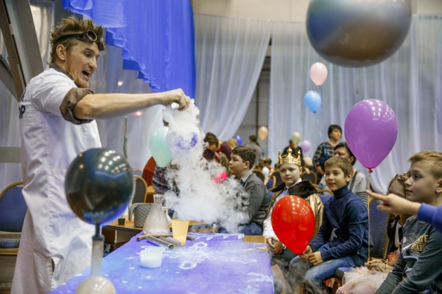 Как и в прошлом году шоу «Чокнутый профессор» пользовалось бешеной популярностью. Затаив дыхание, ребята с восторгом наблюдали за волшебными опытами и визжали, когда в очередной раз оглушительно лопался надутый профессором гигантский шар.