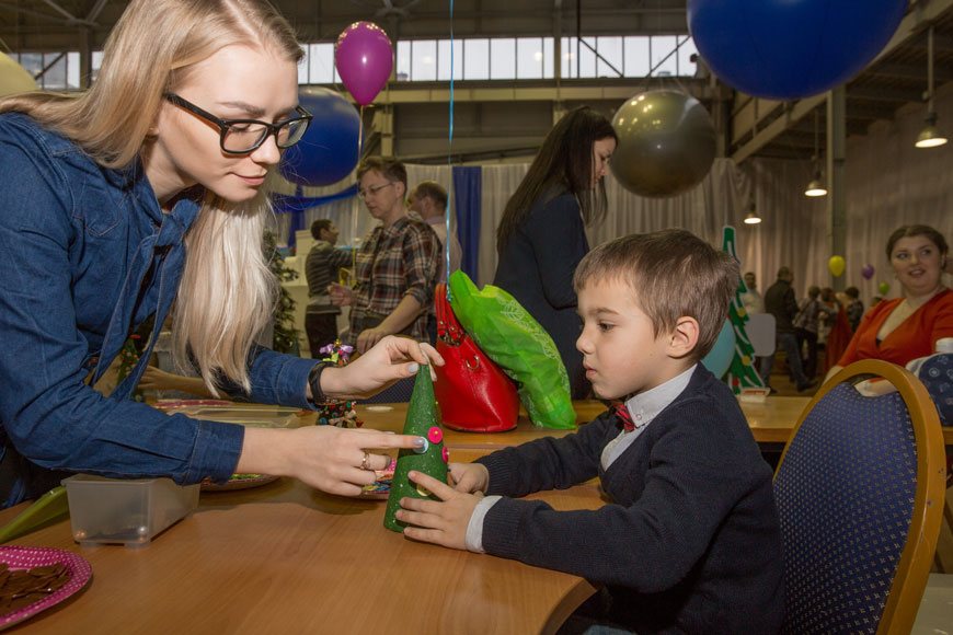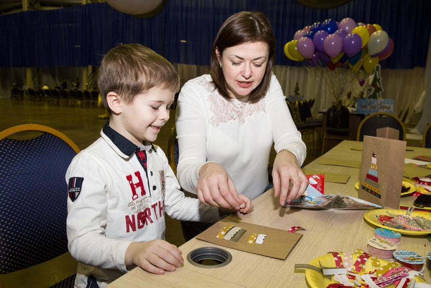 Ну а одним из самых первых и cамых активных участников праздника стал Миша Петров, 5,5 лет. «Я не знал, что будет так весело!» – то и дело восторгался мальчуган. Он разбудил папу Алексея Петрова («СОЦИУМ-банк») в 5 часов утра, чтобы вовремя прийти на ёлку. Малыш принял участие абсолютно во всех мастер-классах, получил и подарок, и специальный приз – значок. Миша признался, что изготовление калейдоскопа понравилось ему больше всего. Атмосфера праздника так вдохновила и обрадовала малыша, что отправляться домой, несмотря на полученные подарки, он совершенно не спешил, одним из последних продолжая играть в финальные игры-вышибалы с аниматорами.
