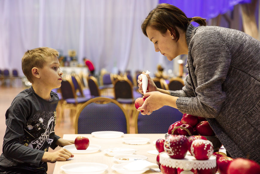 Одним из самых красивых (и вкусных) мастер-классов была роспись яблок сахарной глазурью.