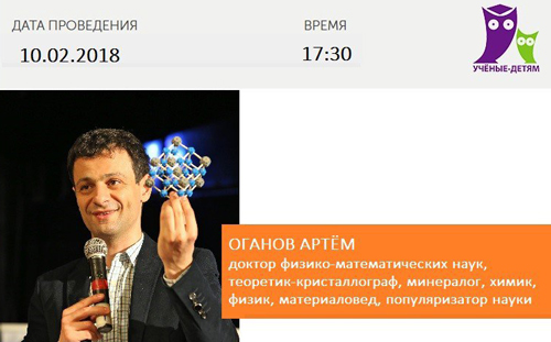 10 февраля 2018 года Артём Оганов, доктор физико-математических наук, профессор Сколковского института науки и технологий, раскроет тайны кристаллов.
