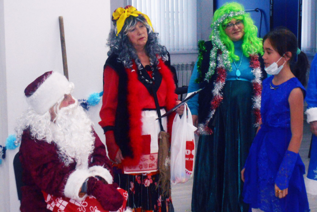 Обычно такой праздник готовят своими силами, но на этот раз разрешение на проведение мероприятия власти дали поздно и ребята из Общественного центра просто не успели поставить представление. Выручили соседи – в театральной группе «Кураж» всегда готовы прийти на помощь, особенно по такому случаю, как Новый год. Все знают, как детям нужен этот праздник.