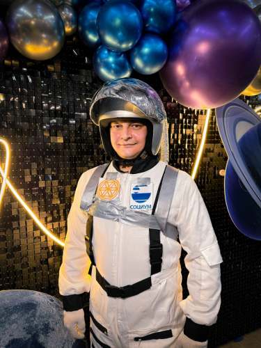 Лучший мужской костюм: «Космонавт» – Александр Авдеев, заместитель генерального директора ООО «СОЦИУМ-ХИРИНО». Его образ покорил коллег точностью деталей и безупречной проработкой!