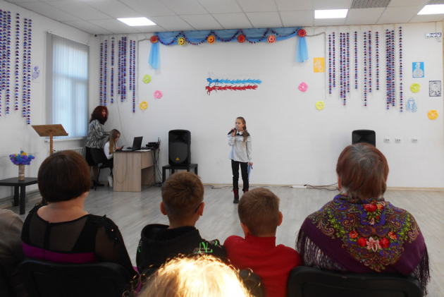Ангелина Ёмкина прочла стихотворение «Смотрю в озёра синие», которое готовила на районный конкурс чтецов. Кстати, на этом конкурсе, состоявшемся в начале ноября, Ангелина заняла третье место. Поздравляем!