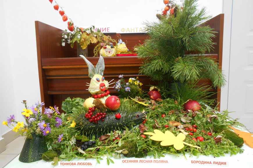 Участники конкурса «Осенняя фантазия» использовали всё, что природа подарила людям в это время года, включая урожай, собранный на огороде и в лесу.