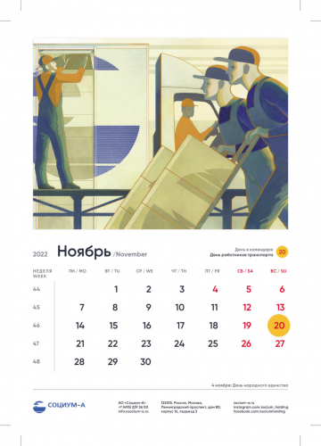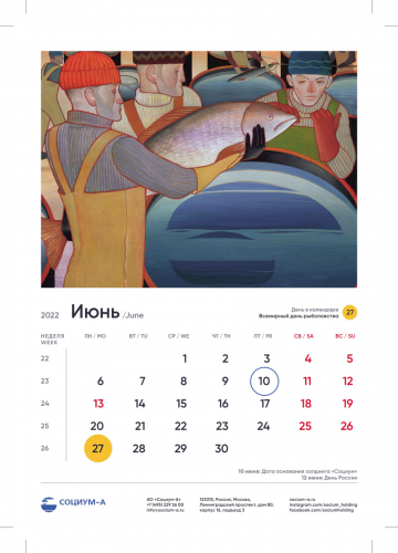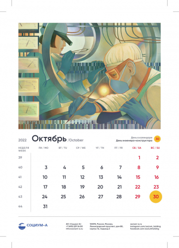 Для изготовления корпоративного календаря «СОЦИУМ-А» – управляющей компании холдинга – был привлечён Леонид Лившиц, театральный художник.
