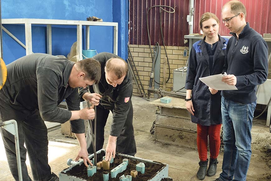 В работу включились технологи отдела главного металлурга. Марина Ким и Иван Большаков рассчитали параметры литниково-питающей системы, провели моделирование процесса литья с применением специализированной программы LVMFlow. Конструкторы отдела спроектировали оснастку в количестве 14 комплектов, которая в кратчайшие сроки была изготовлена цехом №65.