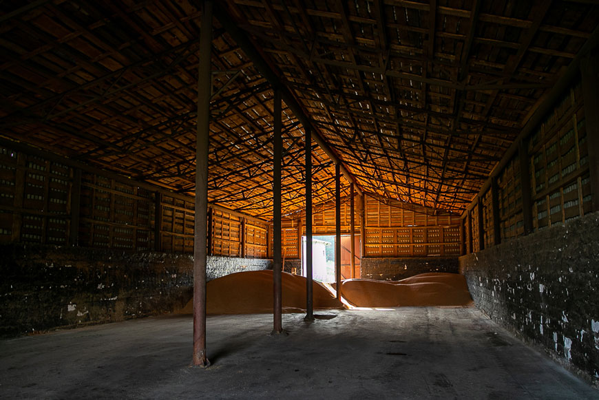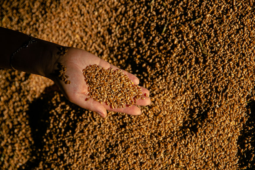 С уборочной грузовики доставляют зерно в сушилку. У «СОЦИУМ-АГРО»» сушилок несколько. Каждая оборудована механическими весами. После взвешивания и сортировки зерно распределяется по складам.