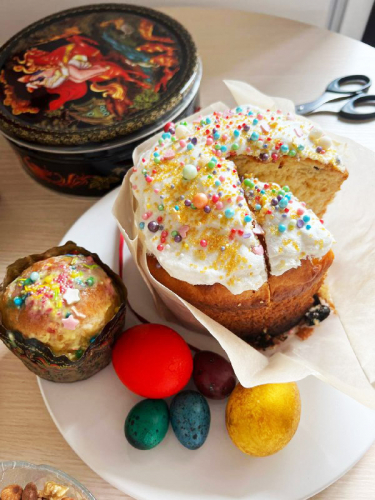 На наше счастье, инициатива в конце концов переросла из онлайна в оффлайн. В первый понедельник после Пасхи в московском офисе «СОЦИУМА» в перерыве стихийно организовалась дегустация вкуснейших куличей ручной работы. Мы воспользовались ситуацией и вовлекли коллег, угощавших друг друга, в наш розыгрыш.