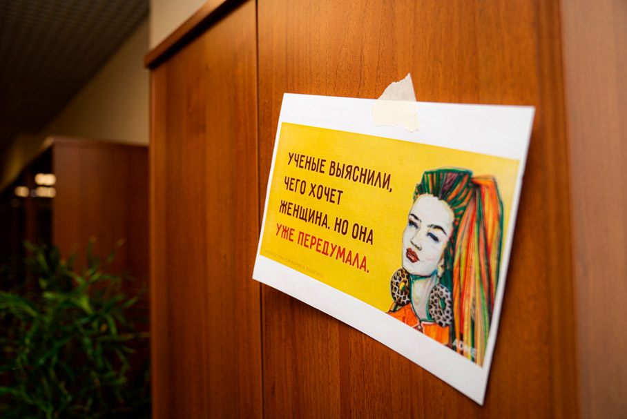 Сотрудники «МОСКВА-СОКОЛ» уже отметили объединённый праздник 23 Февраля и 8 Марта в формате квиза. А утром мужчины украсили офис компании забавными тематическими мемами.