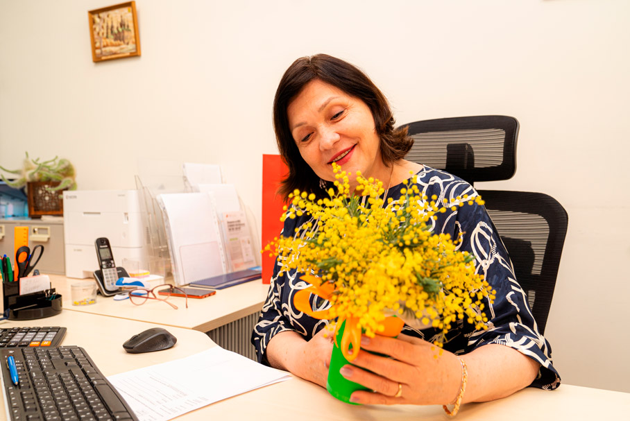 Предпраздничный день для сотрудниц «СОЦИУМ-А» начался с приятного сюрприза: на каждом рабочем столе женщин ждал сладкий десерт, а кабинеты украсили букеты мимоз, наполнив офис ароматом весны.