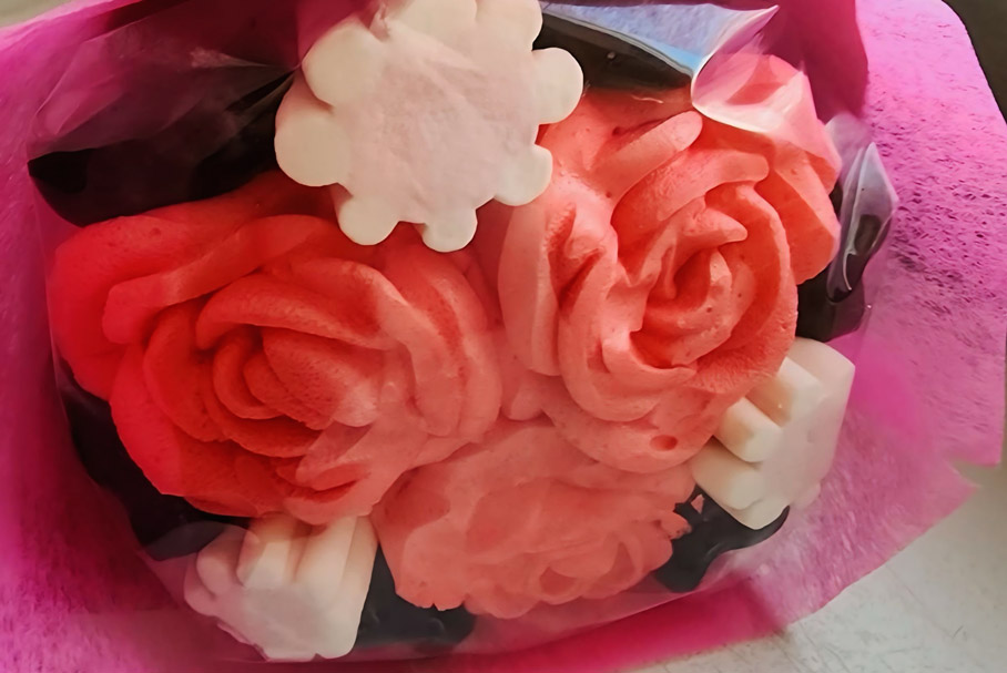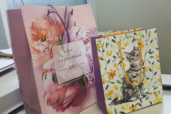 Перед формированием подарков проводился закрытый опрос среди дам, сотрудников охранного предприятия. Исходя из их мнений формировались букеты из роз, маршмеллоу или мыльные букеты.