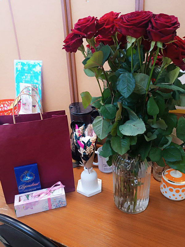 Тёплые пожелания, цветы и презенты получила прекрасная половина коллектива «АСГАРД».