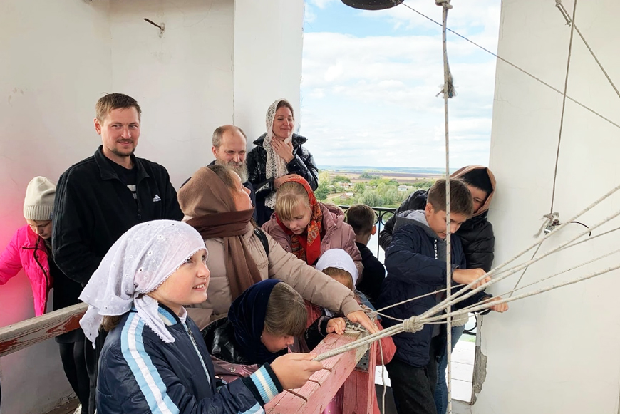 Осенью здесь побывали арзамасские школьники, в том числе ученики воскресных школ из приходов Тихвинской иконы Божией матери и Кафедрального собора. Ребят особенно впечатлила возможность подняться на колокольню. Отец Александр и юный звонарь Михаил Хохряков помогают желающим позвонить в колокола. Да и вид с колокольни открывается потрясающий – бескрайние поля, луга, леса, сейчас расцвеченные во все краски золотой осени.