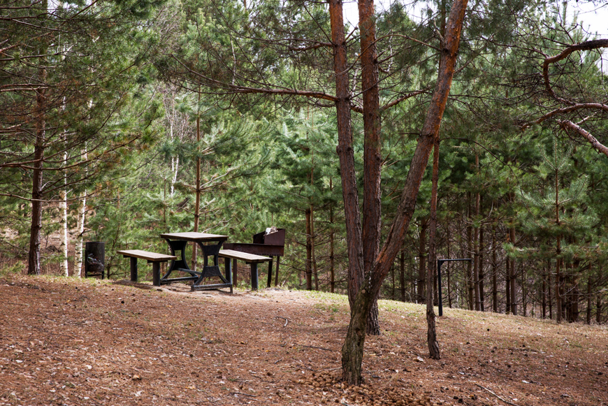 Что такое место отдыха на берегу? Это деревянный стол, лавки, мангал и место для варки ухи.