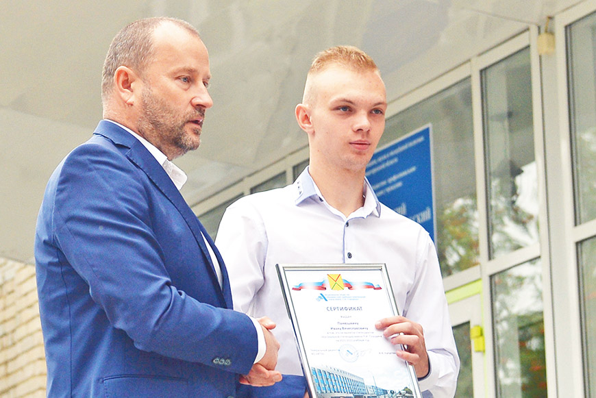 Никита Гурьянов, Дмитрий Зелинский, Кирилл Бобров, Владислав Ерин, Егор Абрамов, Иван Панюшкин в этом учебном году ежемесячно будут получать от предприятия по 2500 рублей.