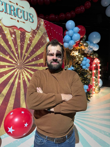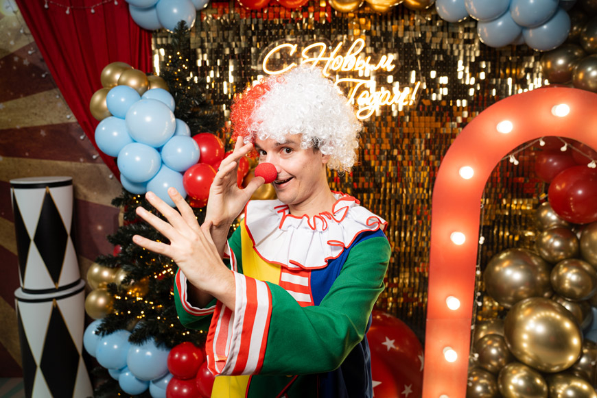 – Я этот костюм специально не выбирал, предложили, – рассказал Егор. – Я уже был тигром, ослом на нашей Ёлке и рад любому костюму. Идея в том, чтобы не повторять образы. Клоуном мне ещё быть не приходилось, вот выпало попробовать. А на празднике я приободрял загрустивших малышей, играл с ними в догонялки и даже научился делать пуделей из шариков. Пудели, правда, получались неказистые, но у меня выстроилась целая очередь детей.