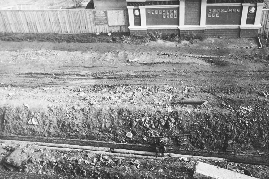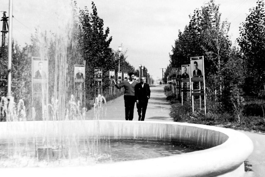 Фото конца 60-х годов. Идёт строительство завода, портреты первых передовиков уже на Доске почёта