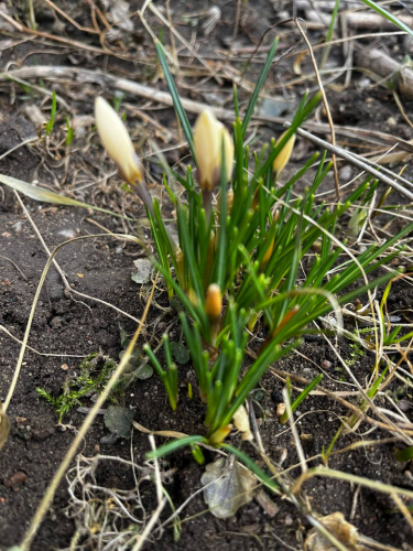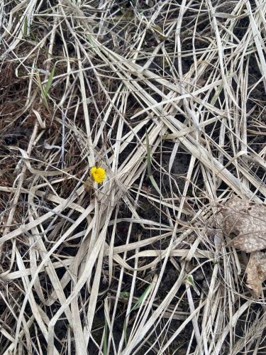 Екатерина Потёмкина (Зеленоградское предприятие) поделилась фотографией символа пробуждения природы, первой мать-и-мачехи среди прошлогодней листвы.