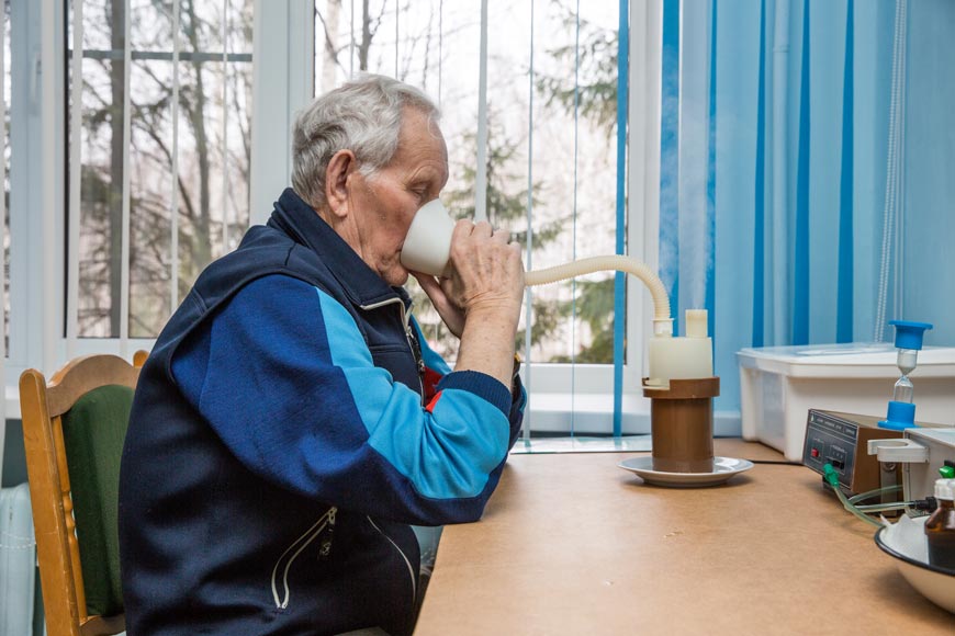 Оборудование лечебного отделения профилактория позволяет отпускать несколько видов ингаляций. С помощью ультразвукового ингалятора проводятся масляные, щелочные ингаляции. С помощью компрессионного небулайзера – любые виды ингаляций с лекарственными препаратами для лечения бронхитов, трахеитов, синуситов, пневмонии и так далее.