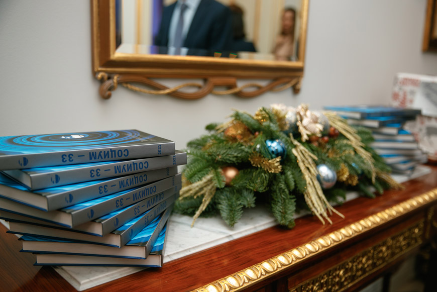 33 года – особая дата. Мало того, что бизнеса старше в нашей стране просто нет. Эта цифра олицетворяет равновесие и совершенство, силу новых возможностей и стремления к переменам. Так что это своего рода юбилей, пусть и нетрадиционный. Именно поэтому в честь 33-летия «СОЦИУМА» выпущено книжное издание, подводящее итог первых семи периодов его истории. Книга впервые была представлена на новогоднем вечере 24 декабря, каждый из гостей получил её в подарок.