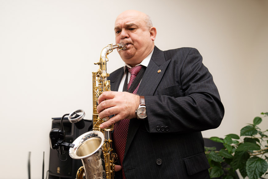 С недавних пор хорошей традицией общих праздничных встреч в главном офисе стала живая музыка. Благодарим генерального директора компании «СОЦИУМ-Технологии» Игоря Владимировича Косяка за то, что он дарит нам чистое блюзовое умиротворяющее звучание саксофона, возможность немного потанцевать или просто послушать.