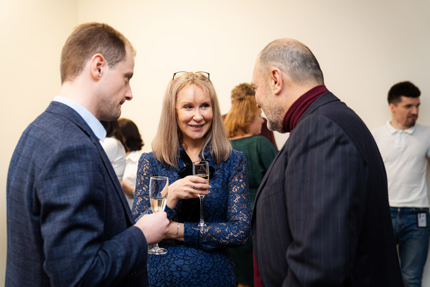 Главное на таком празднике – неформальная часть, когда можно спокойно пообщаться за бокалом шампанского, поздравить и обнять друг друга. И этой возможностью участники поспешили воспользоваться. Радость, которая бывает от приятных сюрпризов, принесли корпоративные подарки с ёлочными украшениями.