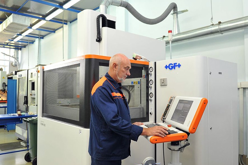 В цехе № 65 проведены пусконаладочные работы нового электроэрозионного прошивочного станка FORM-300. Это прецизионное оборудование нового поколения предназначено для электроэрозионной обработки деталей оснастки. Обработка заключается в изменении формы, размеров, шероховатости и свойств поверхности электропроводной заготовки под действием электрических разрядов, возникающих между заготовкой и инструментом.