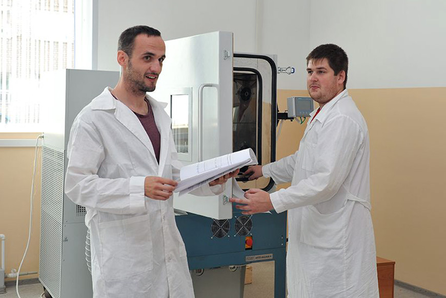 Работу поворотной установки оценивают инженеры-электроники Антон Шматкин и Дмитрий Шмаков