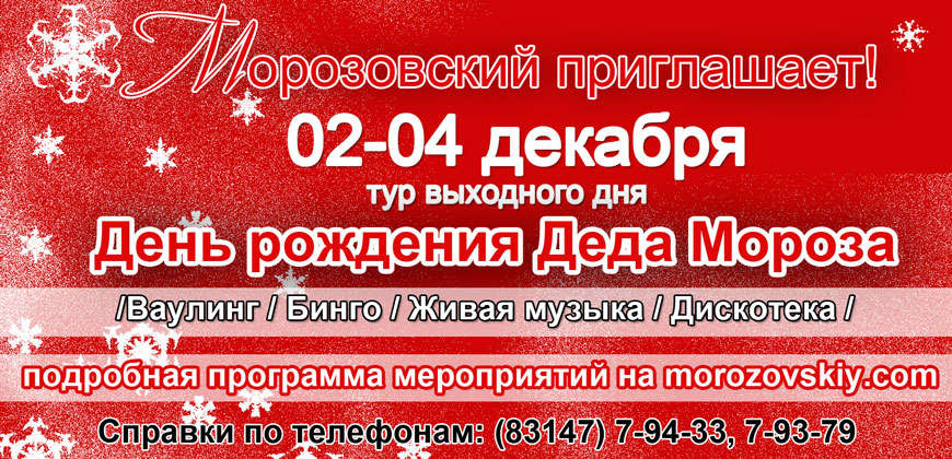 Отмечать день рождения Деда Мороза – этот момент стал здесь традицией. В эти дни профилакторий погружается в атмосферу настоящего волшебства и сказки. На столах зажгутся свечи, а Дед Мороз принесёт подарки. Так уж он привык – даже в свой день рождения он сам одаривает своих гостей.