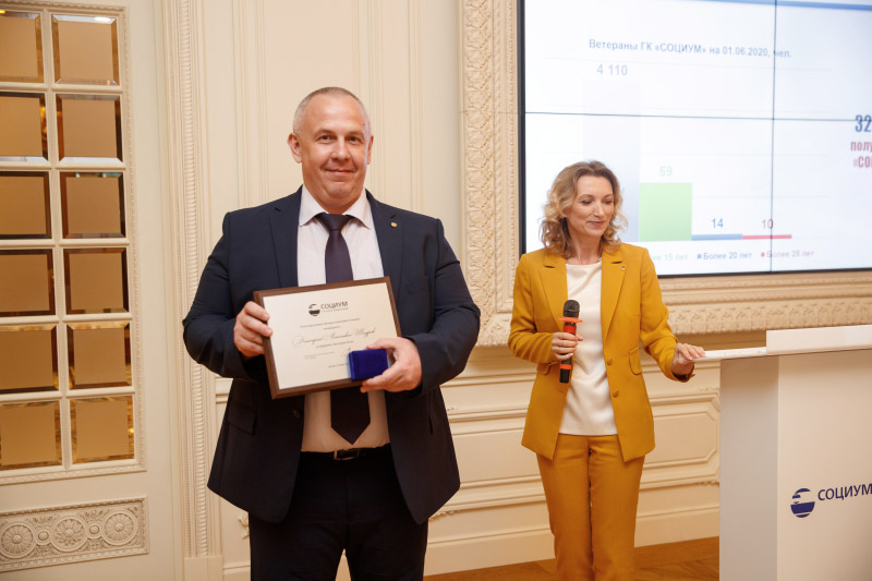 На VI годовой конференции руководящего состава холдинга «СОЦИУМ» Дмитрию Шадрову вручили памятный знак ветерана в честь 20-летия работы в компании ЧОП «ВПК-Безопасность»