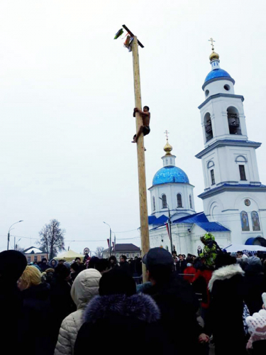 Помимо концерта, было много забав и конкурсов: перетягивание каната, хождение на лыжах всей семьёй, поднимание гирь, скакалка, исполнение частушек, хороводы, батут, тир, распилка бревна, катание на пони, покорение масленичного столба.