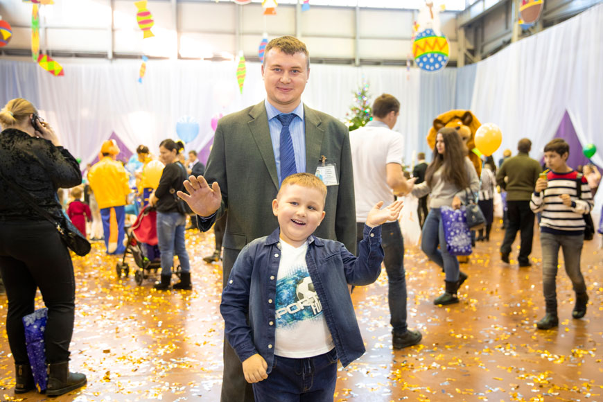 Елена Савицкая, начальник отдела развития ООО «СОЦИУМ-СООРУЖЕНИЕ», привела на ёлку своего младшего сына Максима. Старший Андрей уже подрос, теперь предпочитает более «серьёзные» развлечения, а вот Максимке здесь всё в новинку.