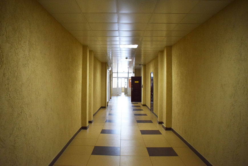Заменены системы освещения и пожарного оповещения, распределительные щитки надёжно скрыты рольставнями. Коридор приобрёл совсем другой вид.