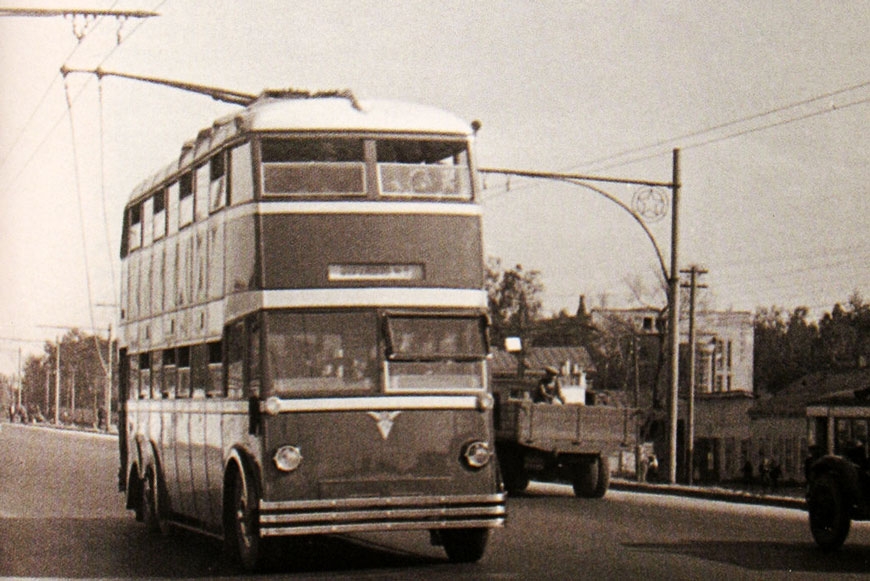 В 1937 году на линию площадь Тверской заставы – Всехсвятское вышел первый двухэтажный троллейбус. По инициативе Никиты Хрущёва, который на тот момент был заместителем Лазаря Кагановича и курировал вместе с ним перестройку Москвы, в частности строительство метрополитена, дубльдеккер фирмы English Electric Company купили в Англии и с большими сложностями привезли в Москву. Железнодорожники категорически отказывались везти такую махину, поэтому троллейбус из Ленинграда, куда его доставили морем, до Твери ехал на буксире, а потом на барже.