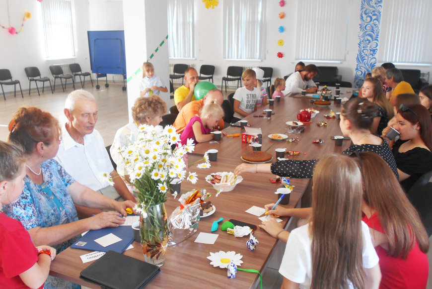 В этот день много пели и танцевали, участвовали в конкурсах – выясняли, чья семья сама мудрая, самая артистичная, самая дружная, победители получали медали из ромашек. Напоследок устроили импровизированный кинотеатр – включили проектор и посмотрели мультфильм о Петре и Февронии.
