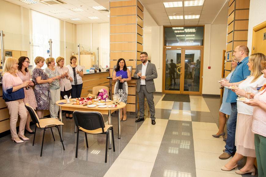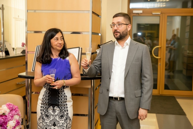 Сотрудники «СОЦИУМ-банка» – как нынешние, так и бывшие – встретились за торжественным ужином в неформальной обстановке. А в понедельник, 10 июня, настал черёд официального поздравления от руководства «СОЦИУМА». Генеральный директор АО «СОЦИУМ-А» Руслан Ашурбейли лично поздравил сотрудников «СОЦИУМ-банка» и председателя правления Светлану Хохлову с юбилейной датой. В свою очередь, Светлана Хохлова выразила благодарность акционеру холдинга Игорю Ашурбейли за многолетнюю поддержку банка и передала ему поздравления с днём рождения холдинга.