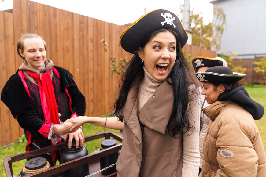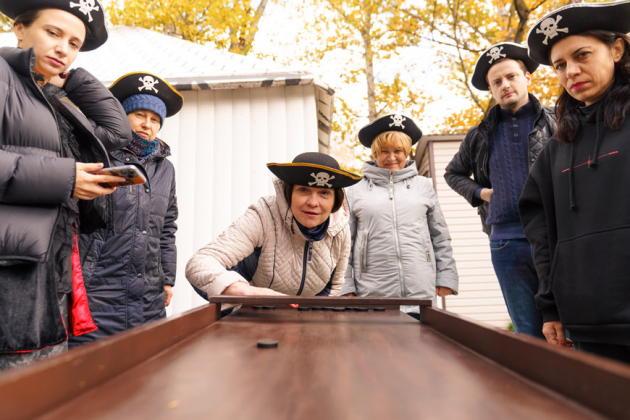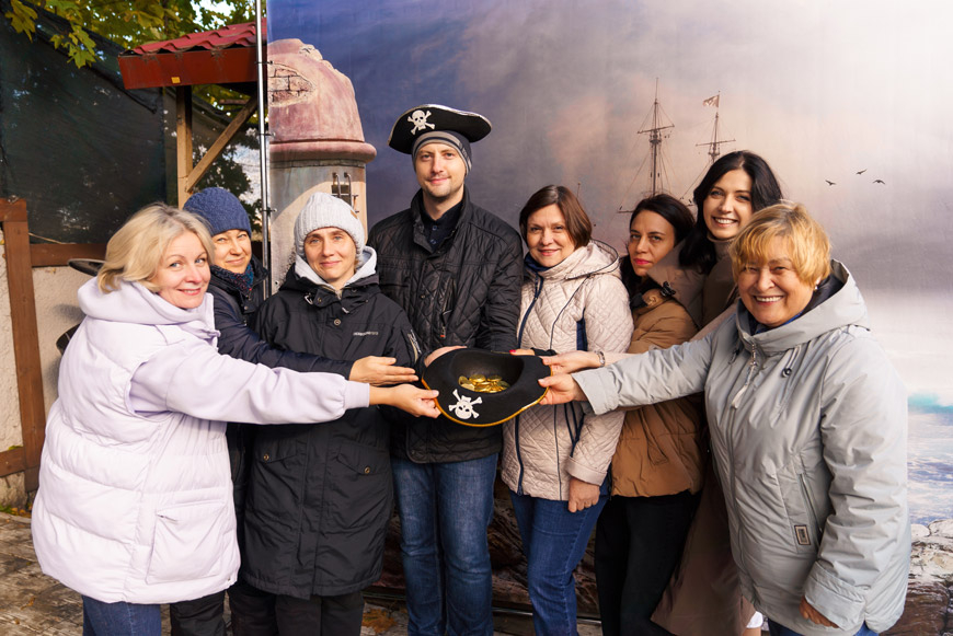 По командам участников рандомно (то есть случайно) распределили ведущие. А вот название и девиз каждая команда выбирала себе сама. Вдохновение тут диктовала флибустьерская тематика, так как «Форт Боярд», как многим известно, – пиратская сокровищница. Выбор игроков показал их боевой настрой и готовность идти на абордаж в предстоящих испытаниях. Все ринулись в бой, не прячась за спинами друг друга.