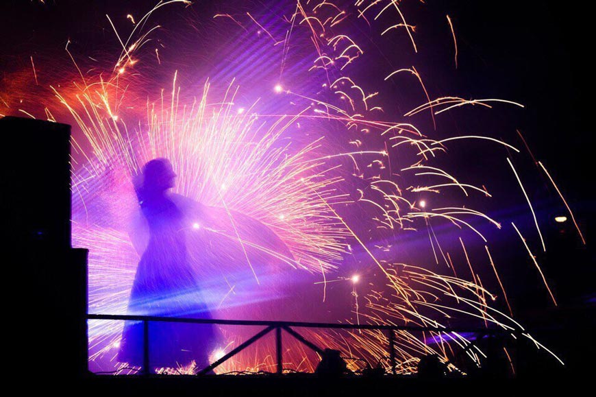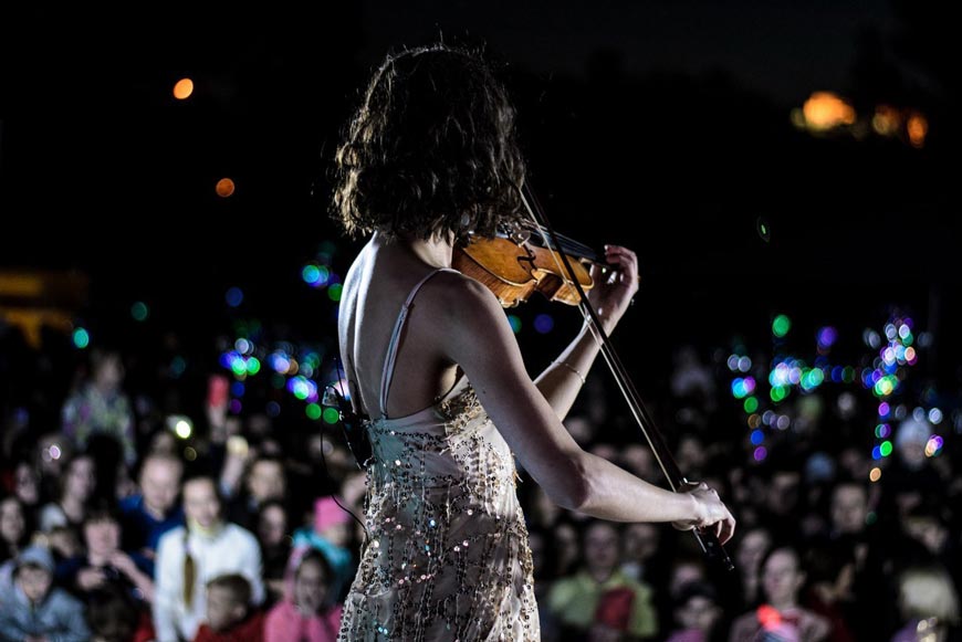 На сцене стадиона в это время шло представление. Сердца зрителей покоряли виртуозные музыканты и артисты, исполняющие сложные трюки с пиротехникой.