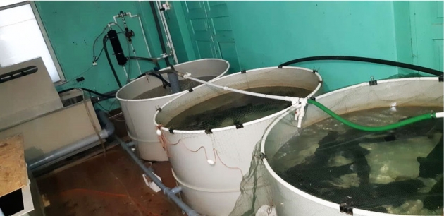 Также закуплено десять новых бассейнов: четыре бассейна объёмом по 5 куб. м каждый, и шесть – по 0,6 куб. м. Маленькие бассейны предназначены для мальков. Как только мальки достигают веса 100-200 г, их переселяют в более объёмные ёмкости.