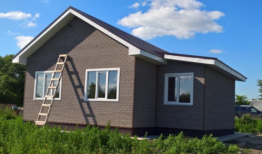 Сейчас не только строительство, но и отделка помещений уже завершены. Дом состоит из пяти небольших комнат: четырёх жилых и одной общей кухни-гостиной.