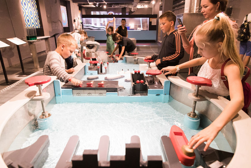 Дети проходят в музей в сопровождении взрослых. Взрослые приобретают свои билеты обычным способом. И вперёд: познавать законы механики, гидравлики, акустики, термодинамики и так далее самыми занимательными способами, а именно при помощи практических экспериментов, проведённых самостоятельно!