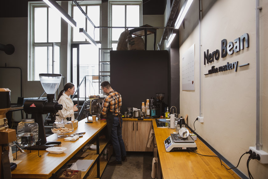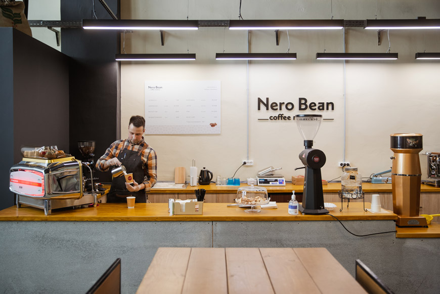 В Nero Bean на Ленинградском проспекте, д. 80, корп. 3, можно насладиться любимым напитком, попробовать новые сорта кофе и первыми оценить качество обжарки зерна.