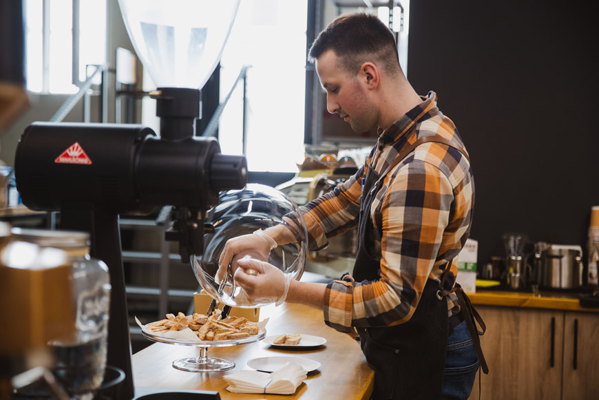 Кстати, за барной стойкой часто можно встретить одного из основателей Nero Bean Микаела Хажакяна. Он сам варит кофе, миксует разные сорта, экспериментирует с обжаркой. Последняя новинка, созданная в ростерной Nero Bean, – кофе с ароматом коньяка.